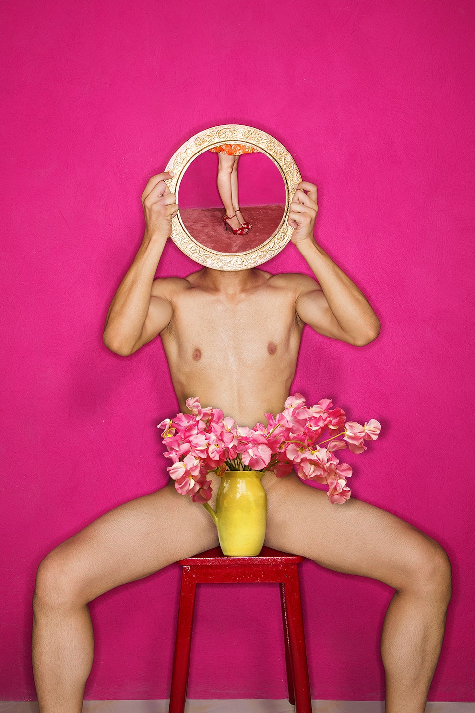So in my series of photographs I have altered the two roles and delineated men as commodities. Its inspired from a perspective of an independent and strong women and is a rebound of a practice with the complete submission of supremacy."