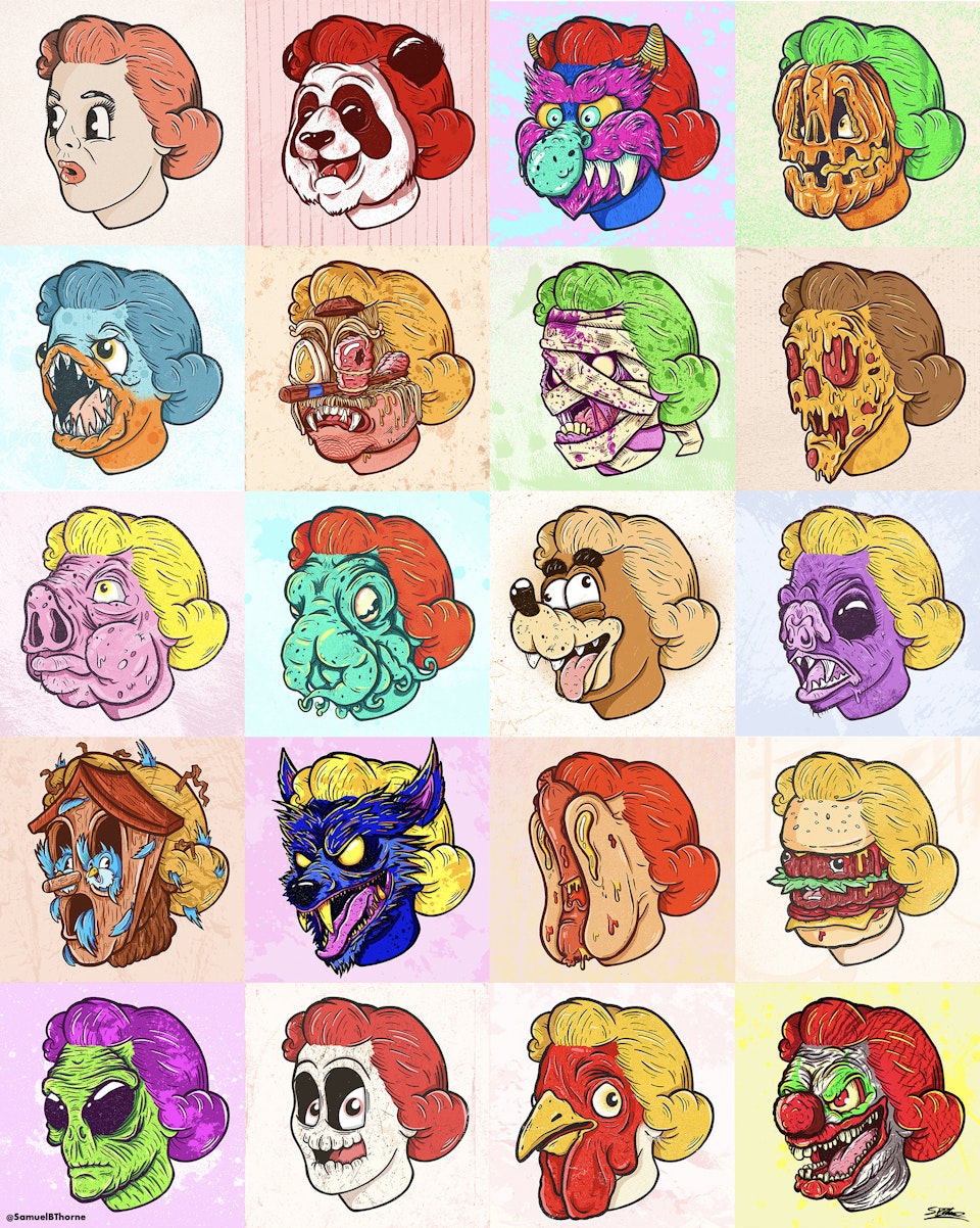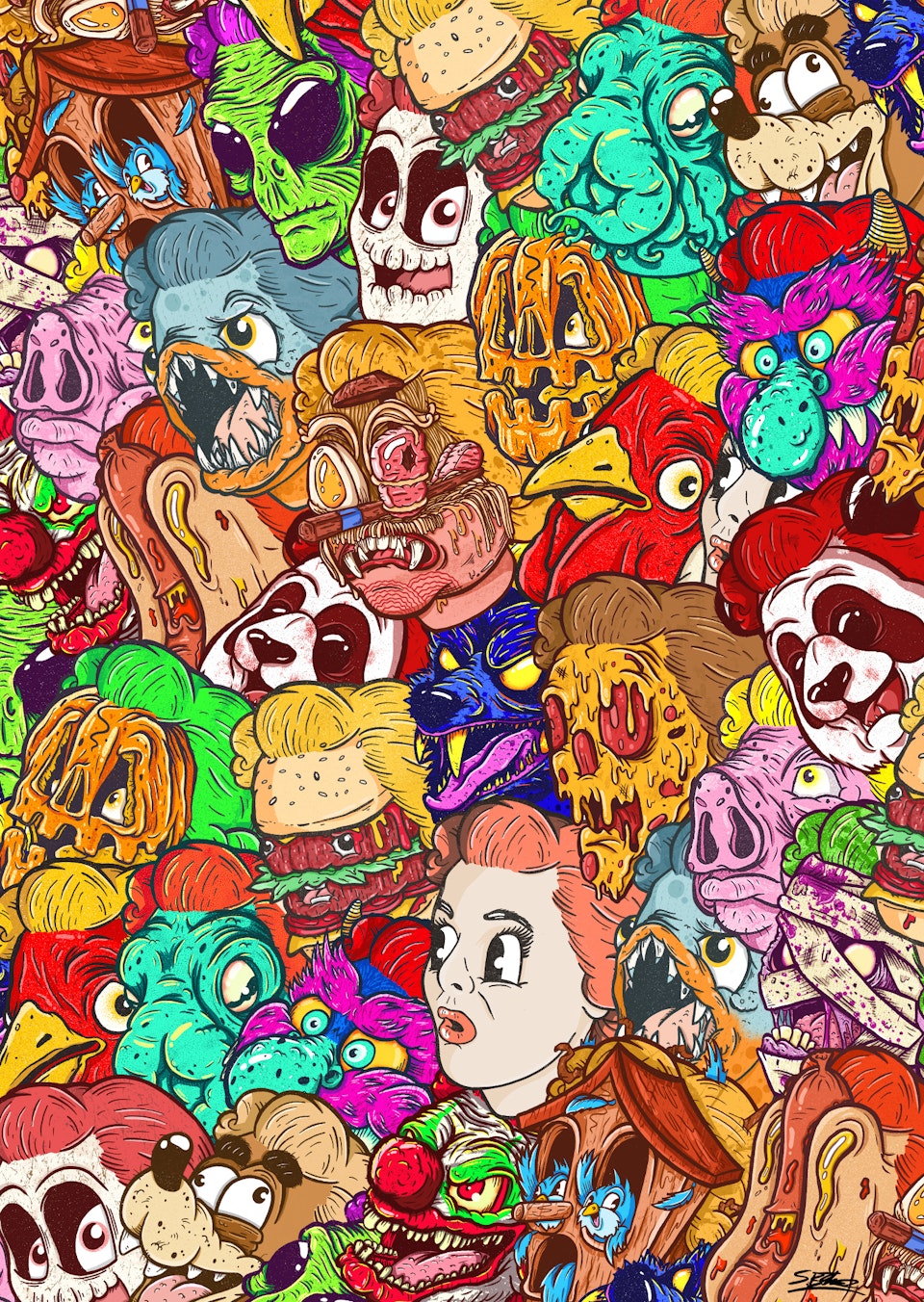 This original illustration then became a template on which I drew a further 19 characters drawing from all corners of my influences. Initially a personal experimental project, I found these designs lent themselves perfectly to stickers, pin and prints."