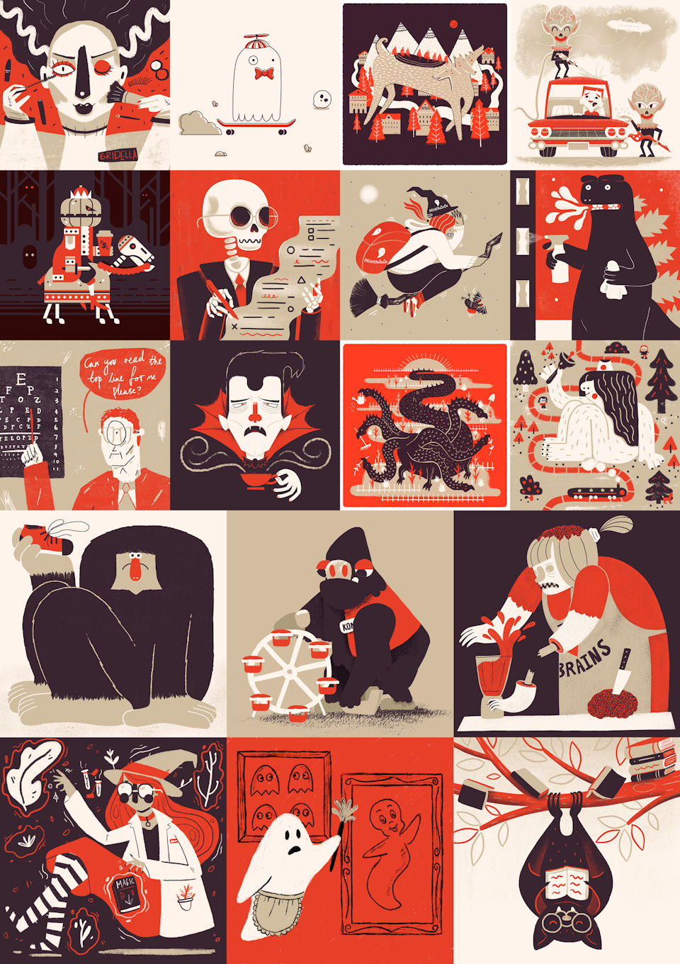 "Pretty Picture Club is an international illustration studio that teams up with various illustrators each month to create work around a specific theme and color palette. In October of 2017, our theme was 'Modern Monsters'."