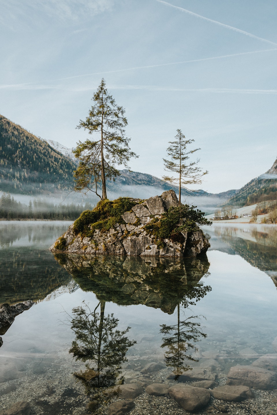 "We drove at a really misty morning to Berchtesgaden, Bavaria. Near Lake Königssee we decided to drive to Lake Hintersee, because of too much fog at Königssee. And that was an perfect decision. Only a bit fog on the lake and the sun rises behind the mountains. So we get an amazing sunrise mood."