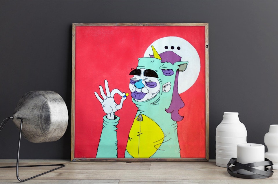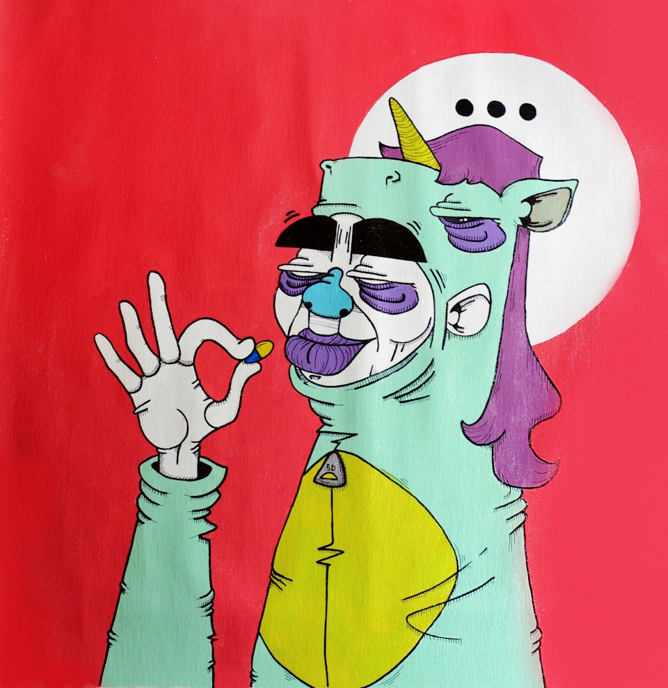 "This is one of my characters. This unicorn is a hypochondriac, but that doesn't take away the fun."